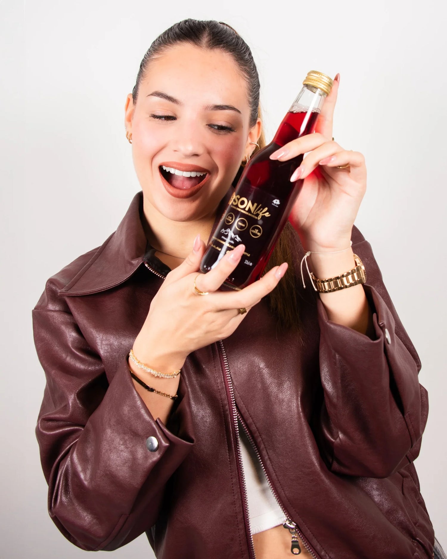 Infusion naturelle d’hibiscus, riche en antioxydants et vitamine C. 0.0% alcool, sans théine et moins sucrée.