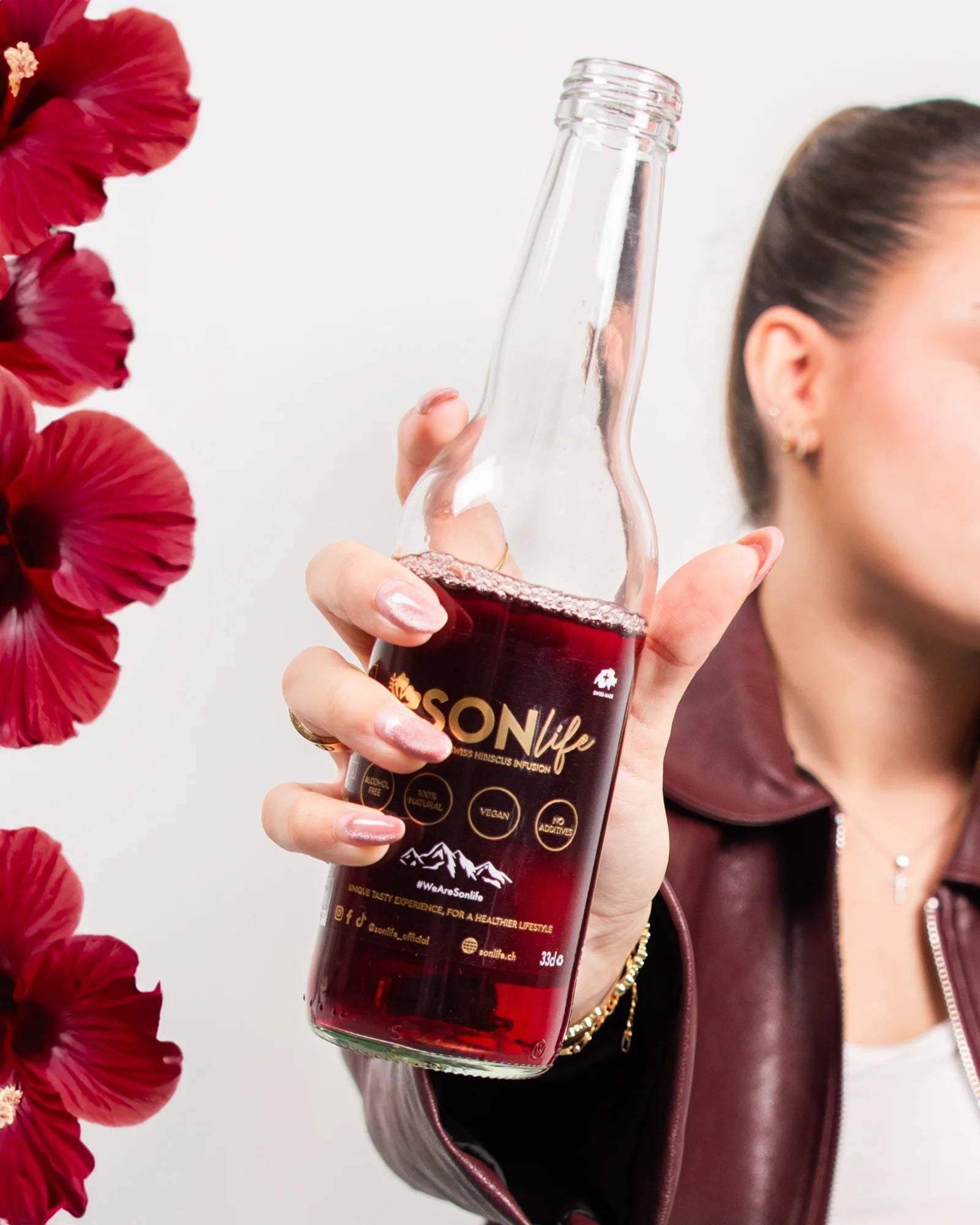 Sonlife stands out for its 100% natural formula, free from artificial sweeteners and chemical preservatives, guaranteeing a pure and healthier experience. Designed with a much lower amount of sugar than conventional drinks, Sonlife offers a perfect balance between well-being and flavor. Each sip refreshes and revitalizes your body and mind, ideally accompanying you throughout the day. Proudly crafted in Switzerland, Sonlife reflects an uncompromising commitment to quality and excellence. Savor the difference of an authentically Swiss drink, designed for those who value health and natural taste.